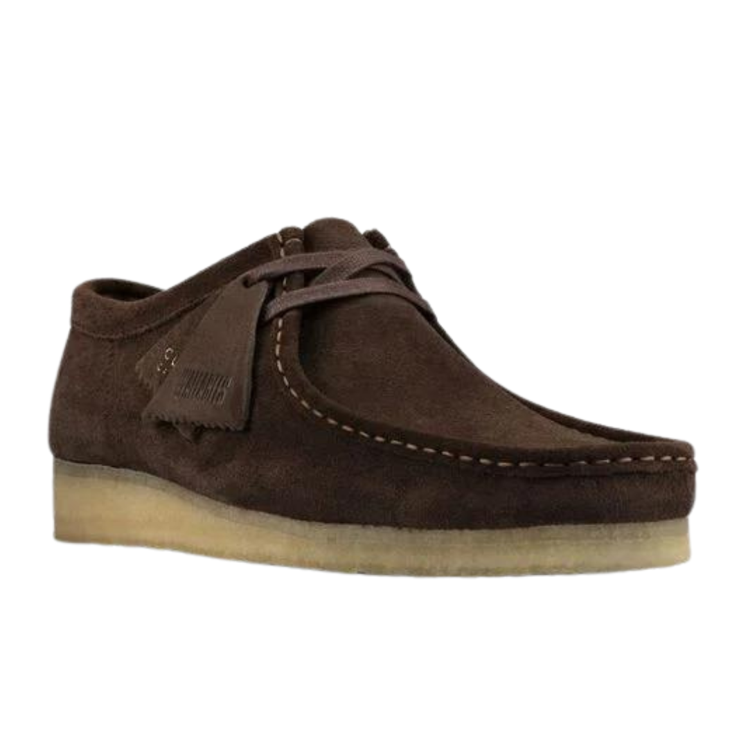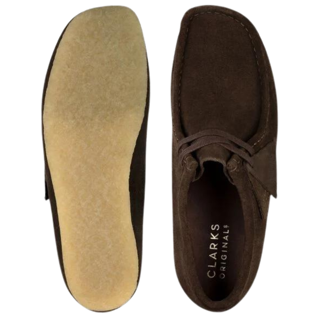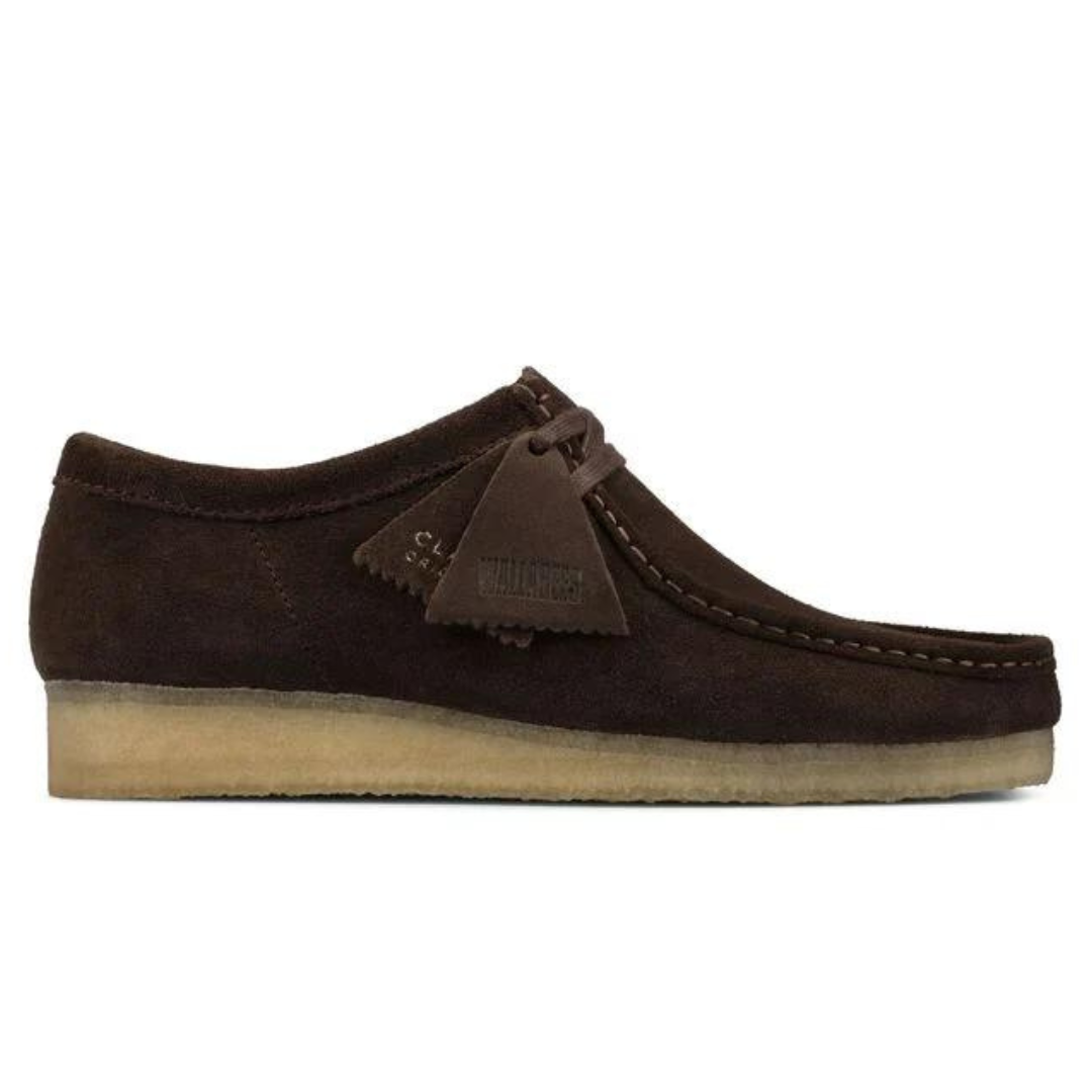 Betal med MobilepayWallabee fra Clarks er blevet en ikonisk klassiker over hele kloden takket være dens mokkasin konstruktion og rene enkle linjer. Her drenge udgaven i mørkebrun ruskind og rågummisål.