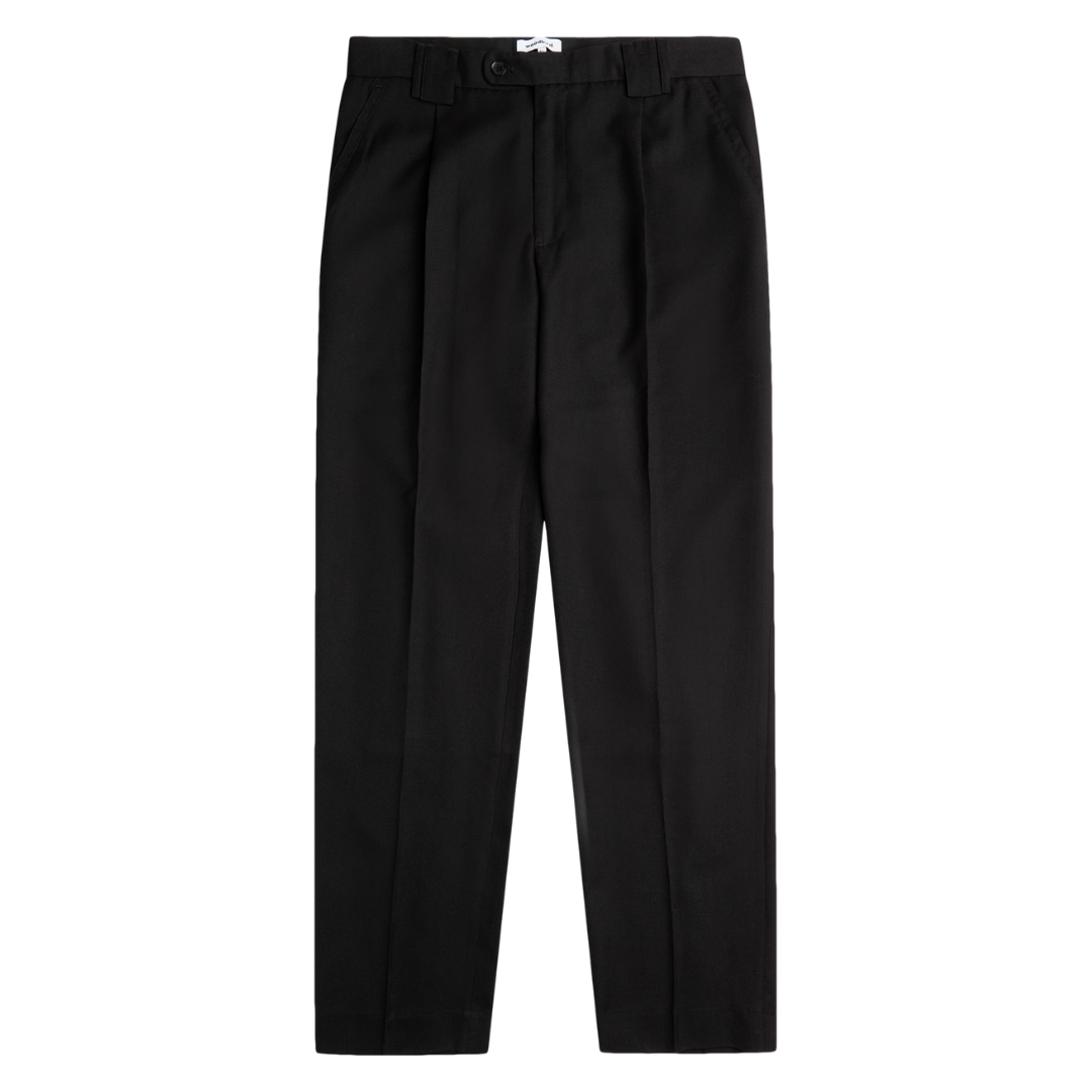 Betal med MobilepayBen Suit buksen fra Woodbird er med skrålommer og lynlåslukning. Buksen er lavet i en komfortabel løs pasform.