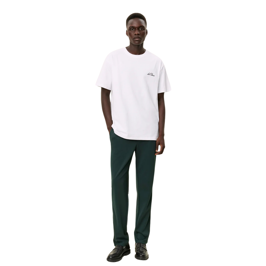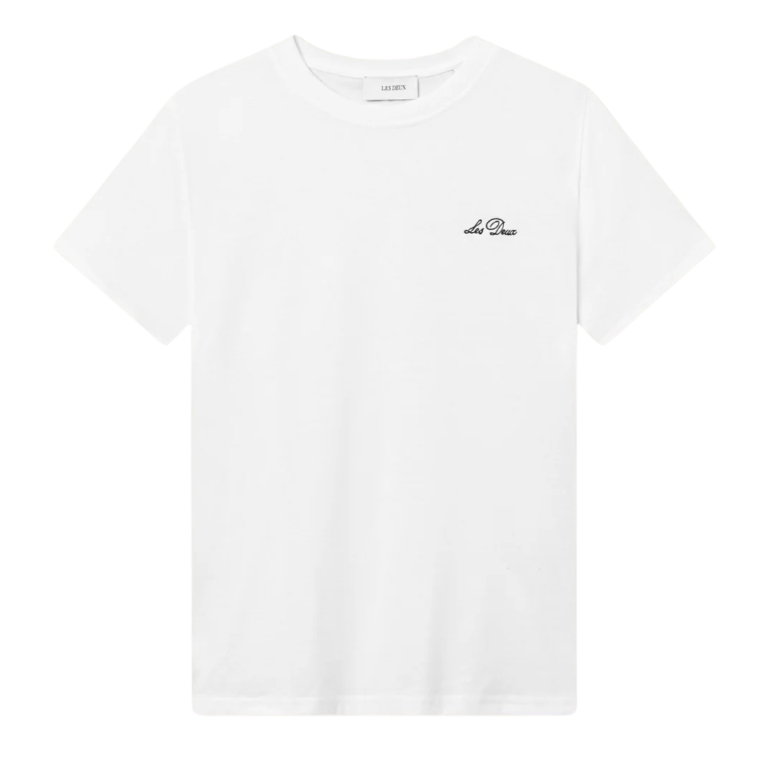 Betal med MobilepayDenne crew t-shirt fra Les Deux kommer i en kraftig kvalitet samt har en firkantet pasform. T-shirten er minimalistisk dekoreret med kursiv mærkebogstaver broderet på brystet.
